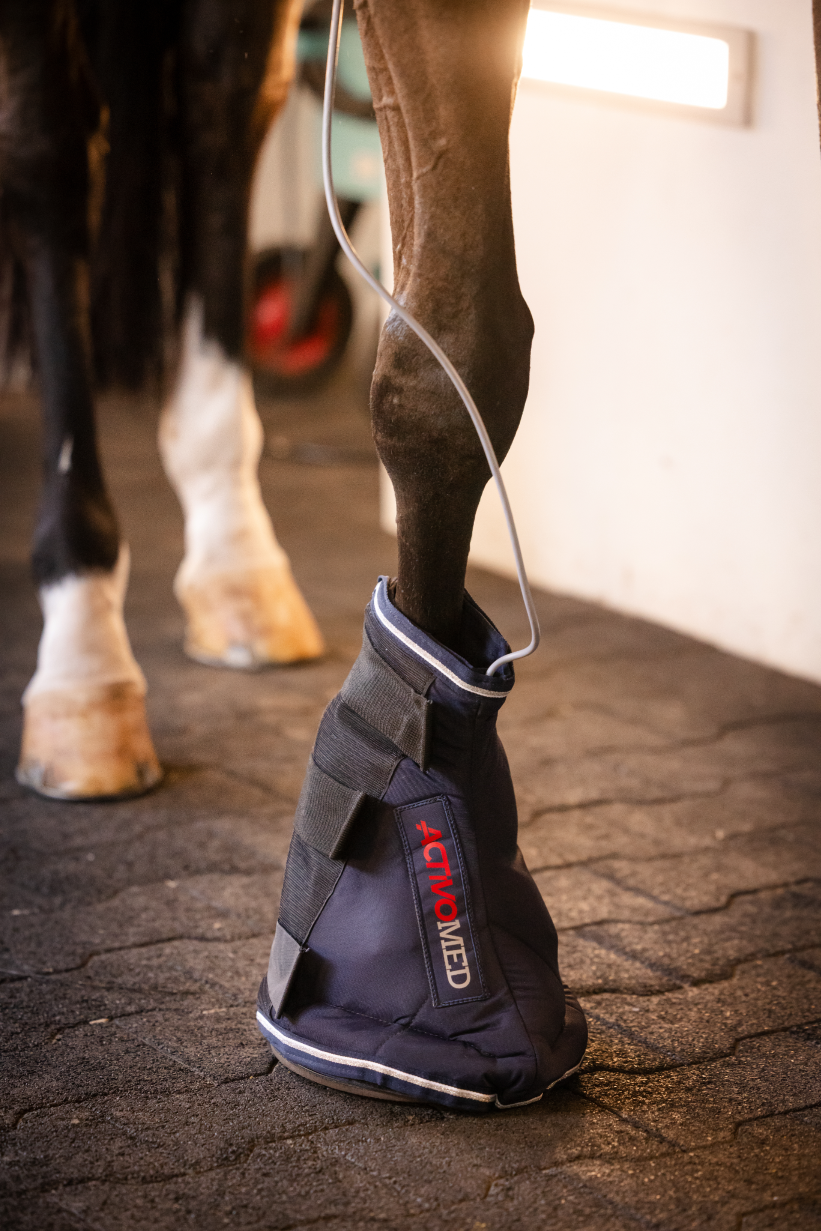 The ActivoMed Hoof Boot delivers targeted PEMF and massage therapy to the hoof, coronet band, and pastern—ideal for rehabilitation, inflammation management, and ongoing hoof care.